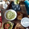 Pile the parsley, basil and sun-dried tomatoes, with a drizzle of their oil and a pinch of pepp