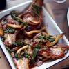 Put the pork chops on a plastic chopping board and trim off the skin and some of the fat. Cut the skin into 1cm slices and put them into t