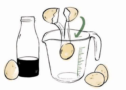 Mix the eggs, sugar, soy sauce, mirin and salt in a measuring jug.