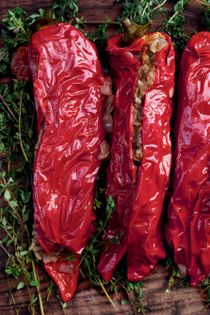 This is Yotam’s mother’s recipe. It is mellow yet delectable and you don’t need much else beside it. Serve with Kohlrabi salad and you are sorted. Make sure you have a frying pan or pot wide enough to accommodate all the peppers snugly, in one layer; you can squash them together a little. Otherwise, consider cooking in two separate pans.