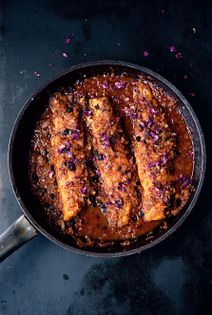 This dish originates from Bizerte, the northernmost city in Africa. It is sweet and spicy and beautifully aromatic. It is adapted from a recipe kindly given to us by Rafram Hadad (see more on Hadad Brick). Serve it as a main course with some plain rice or couscous and something green, like sautéed spinach or Swiss chard. Dried rose petals are available in Middle Eastern shops and also online.