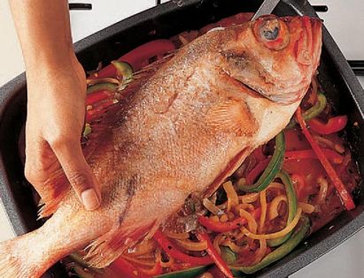From Turkey and Greece to North Africa and Israel, fish is often cooked with tomatoes then cooled and eaten at cool room temperature. This makes a terrific Shabbat Lunch.
