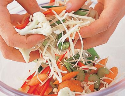 Fresh, crisp vegetables, brined and spiced, make this favourite Sephardic relish, or pickle. The turmeric gives it a golden hue, as well as warmth of flavour. It is delicious – some say irreplaceable – with Falafel.