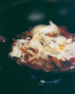 Season the pork fillet strips with salt, cayenne pepper and paprika. Scatter the strips into the pan, increasing the heat and cooking for several minutes with the onion and mushroom.