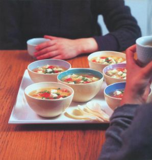 This is a colourful but easy soup to assemble. If you use vegetarian stock, you can turn this into a delectable vegetarian treat to share with friends and family.