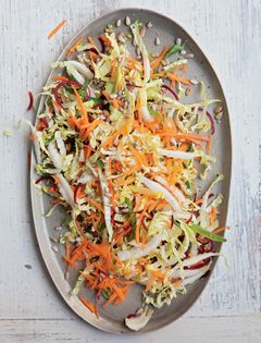 The beauty of this recipe is that both the salad and the dressing can be made in a food processor. Use the shredding blade to shred the cabbage, carrots, and beet—there’s no need to clean the bowl after each vegetable—then switch to the metal blade and process all the dressing ingredients together.