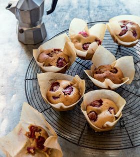 Succulent berries stud these puffy golden confections like rubies on a beautiful brooch. Each bite of these muffins carries a wonderful burst of berry flavor.