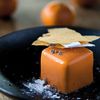 I created this dessert in Hong Kong during Chinese New Year after I noticed that chefs everywhere were making desserts that looked like real fruit. It was cool the first time I saw this technique, but like most trends in Hong Kong, people tend to overdo it. I had no intention of jumping on the fake fruit bandwagon, but I wanted to channel this idea into something different with a connection to Chinese New Year. Thus, the more abstract Mandarin Cube was born. I paired fresh mandarin puree wi