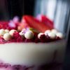 Red fruits mean summer to me. Strawberries, raspberries and rhubarb are at the top of my list, and it’s amazing how a few drops of Japanese yuzu juice can lift them even higher. A good dish can advance to a great one with a touch of citrus accent, and here’s a fine example involving a sweet ‘n’ tart puree perfected with a little yuzu juice. I use that puree to make a red fruit gelée and pour it over a luscious white chocolate