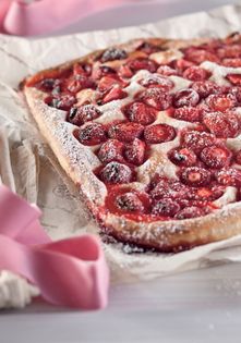 This is truly lovely. The kind of thing you like just being at the same table with. The strawberries must be incredible — sweet and bursting with flavour. If yours are not, you may need more sugar. You can serve this as a snack or for breakfast, it’s something between a sweet and a bread.