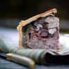 A CUTTING PIE MADE DURING THE AUTUMN AND WINTER MONTHS. LAYERS OF LOCAL GAME ENHANCED WITH SLOE GIN AND A REDCURRANT JELLY, AND ‘STUCK TOGETHER’ WITH A PEPPERY, HERBED FORCEMEAT. GREAT WITH A CHUNK OF WENSLEYDALE CHEESE AND MAYBE THE ODD PICKLED ONION.