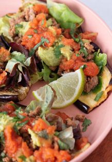 - Slice eggplant thin. Spray with oil on both sides and sprinkle with seasoned salt.