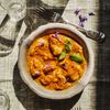 This happy marriage is loosely inspired by both pasta alla vodka and a gnocchi di patate with tomato sauce. I use a combination of tomatoes and peppers for layers of brightness alongside the fresh green herbs. Why vodka? As well as sharpening the flavours of every fresh ingredient, it adds a touch of heat and balances out the sweetness of the fruitier flavours in the most enchanting way.