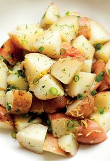 This hearty salad is traditionally served at weddings in Macedonia (probably because it goes well with rakija, the popular anise-flavored liqueur). Growing up, it was a staple at family picnics because it traveled so well and could stay unrefrigerated for a few hours. It is a great way to use potatoes outside of the traditional stews and soups. I’ve used red potatoes here because I love how silky they are. They have a tougher skin that helps to hold their shape but you could really u