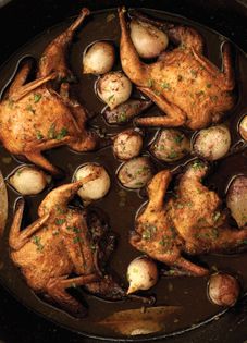Game birds are quite popular in Macedonia. They can be found in the lowlands and open fields, particularly in the regions of Pelegonjia and Dolnesko. If you can’t find quails in your local market, you can easily substitute Cornish hens or chicken thighs in this recipe; just adjust the cooking time accordingly. Serve this dish with Pilav Od Oriz (Rice Pilaf) or Pecheni Kompiri (Roasted Potatoes).