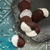 These dark chocolate madeleines are all dressed up in melted white chocolate. I like to sprinkle them with edible glitter, sprinkles, or sparkling sugar, too.