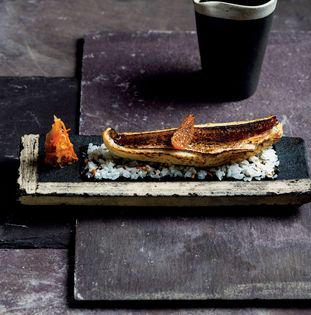 To make the marinade, combine the ruby grapefruit, orange zest, bonito flakes, red chilli, ginger, mirin, ponzu vinegar, soy sauce and yuzu juice in a medium-sized saucepan and heat but don’t boil. Remove from the heat and allow to cool.