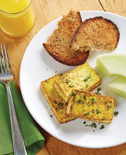 This breakfast tofu is a mobile version of a tofu scramble, which—while delicious—doesn’t travel well and requires stovetop supervision. Wrap a couple of slices of this tofu in a brown rice tortilla, or sandwich it between two slices of sprouted grain bread with loads of arugula, avocado, and even a few leftover cold roasted root veggies. If you make a big batch on the weekend, you can have your weekday breakfasts prepped and ready to go in three minutes flat. Although we prefer to serve th
