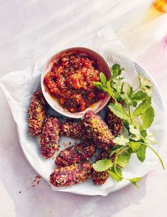 Chops are a classic Bengali dish – they make perfect snacks or finger food for a party. Nice and spicy, with a pop of colour from the beets and crunch from the peanuts, these are a real conversation starter. Serve with a raita for dipping or a chutney – my Spicy Tomato and Date Chutney is ideal. They are best eaten when freshly fried, but can be reheated in the oven at 180°C/350°F/gas mark 4 for 10–15 minutes.