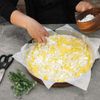 This is my adaptation of the cheese pies Balkan women prepare whenever they fire the wood ovens. They are easy and fast to make. The thin, crackerlike cheese pastry is called tis tembelas (“lazy woman’s pie”) in Epirus, at the northwestern edge of Greece, no doubt because it is not a proper pie with several sheets of phyllo and stuffing; often it is a simple batter of flour, eggs, crumbled feta, and milk, spread on a sheet pan and browned instantly to crispy perfection in a blazing-h