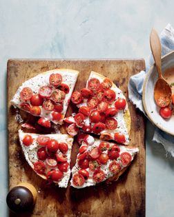 When you combine chickpea flour with water to form a golden yellow batter and bake it, the result is a gluten-free, protein-rich flatbread that’s all too easy to snack on. It's addictive on its own (see Cacio e Pepe Farinata) but also happens to be sturdy enough for toppings. Here I use it as a vehicle for feta cheese that’s been whipped to impossible creaminess. (Spreading it on the flatbread keeps my temptation simply to eat it straight from the food pro