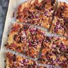 This pizza is as lushly exotic looking as it is unexpectedly delicious. The richly sweet caramelized shallots covered in a snowy blanket of goat cheese and topped with rubylike pomegranate seeds can be served for dinner, for lunch, or as elegant cocktail-party hors d’oeuvres.