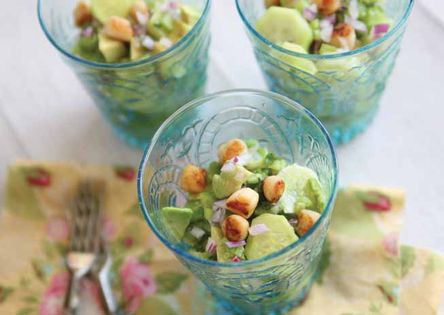 One hot summer day when I was at the market, I had the urge for a refreshingly cool summer salad minus the lettuce. I was thinking shrimp cocktail when all of a sudden I spotted beautiful fresh scallops. I had never made a scallop cocktail, but I had to try. I scoured the produce section and found ingredients I thought might go well together. The combination of cucumbers, lime juice, cilantro, and avocados transformed this sa