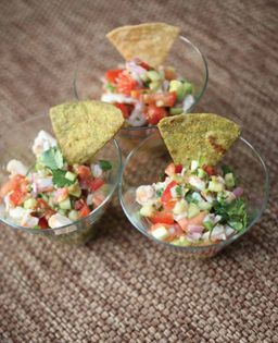 Ceviche is seafood marinated in citric juices such as lemons and limes. We did not grow up near the beach and hardly ate any fish. But after leaving El Paso I began to eat more seafood and quickly fell in love with it, especially shrimp. The first time I ate ceviche was in my early twenties in Mazatlan and I decided to recreate the magic back home. This ceviche is very simple and fresh. The best part is that there is no cooki