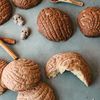 A concha is a soft and sweet Mexican bread topped with a sweet crust that crumbles easily. Concha means “seashell” in Spanish, and the crust of these small breads is layered to look like their name. White (vanilla) and brown (chocolate) are the classic toppings. The two toppings here are inspired by the flavors of horchata and Mexican chocolate.