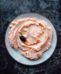 So salty, but so tasty! Taramasalata is the most authentic of Greek dips. When we were young, my mom would make this on Clean Monday (Ash Monday, the first day of the Great Fast) because fish roe is technically not meat. It was accompanied by luscious, hot-out-of-the-oven lagana (unleavened flat bread). My siblings and I would scoop up heaps of tarama with the bread, leaving no scraps for our folks. We were a feisty bunch, knowingly aware there would be little or no fun food f
