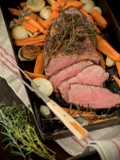 The essential point about roast beef is simply that it must be tender and juicy. It is best to buy high-quality, beautifully marbled meat from a butcher you trust. In our recipe, we slowly cook the roast in an oven at medium heat. The vegetables are added at the same time, and then there’s also a delicious sauce, which is prepared in no time. Serve with a side of mashed potatoes.