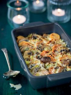 Peel and halve the sweet potatoes. Slice thinly. Bring the double cream and vegetable stock to a boil in a large, wide saucepan. Season with salt and pepper and add 3sprigs of thyme. Remove the saucepan from the heat and add the sliced sweet potato. Cover and leave to absorb a little of the liquid.<