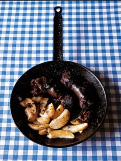 French black pudding is made from ham, pork offal, blood, fat and flavoured spices, usually cloves and pepper. Most recipes will tell you to cook the boudin separately from the apples, and often you will see it neatly served with the apple and potato purées on the side. But my children love this messy, unattractive way of presenting and eating the whole lot thrown in the pan together. Serve it with French mustard.