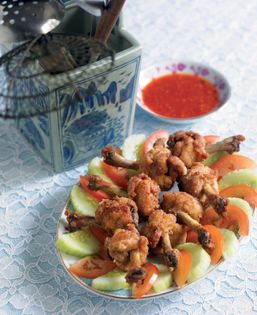 These drumsticks are an all-time family favourite. Nowadays, I describe them as chicken lollipops. My mother took the time to fashion the chicken drumettes (the meaty first joint of the wing, also called wingsticks) into ‘meaty balls on bone sticks’, hence looking very much like drum mallets … or lollipops in the eyes of my daughter Lizzie.