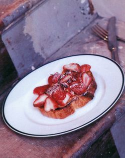 I’d love to call this strawberry bruschetta, but I’m not that cute. The French and Italians have been serving fruit on toasted bread or brioche for many years, before the rest of us caught up with the idea. Here, fresh, sweet strawberries melt under a sugary glaze on grilled country bread. In summer, try it with fresh plums, sliced peaches, or your favourite berries. And call it bruschetta.