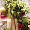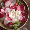Only four ingredients—radishes, salt, pepper, and crème fraîche—yet they make an extremely tasty raw vegetable first course. If you can, make it with the wonderfully sharp black radishes, still relatively scarce in the States but available at some farmers’ markets. Or use a combination of red radishes, daikon, or pink-and-green-striped watermelon radishes. You can even use tender young turnips. The only work is in the slicing. A mandoline is the best tool to ensure the slices are uniformly