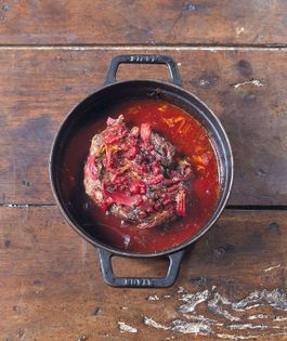 Add the berries, tomato sauce and veal stock, season with salt and bake for another hour.
