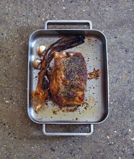Place the pork rack in a baking dish, brush with the herb mixture, season and marinate for 1 hour, uncovered.