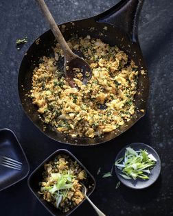 Kale and kimchi unite! This dish has a decidedly Korean flavor, with ingredients like gochujang and kimchi, both of which are fermented and good for you. I could go on about the healthfulness of this dish, with the kale and quinoa and all, but I’d much rather tell you how delicious it is. Make this tonight; it’s delish.