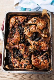 This is a dish I regularly cook for friends. All the work is done in advance – you can marinate it for up to 2 days in the fridge – and then it’s just into the baking tray and into the oven when you’re ready. The chicken loves the long marination but it can also be cooked straight away, if you don’t have the time. If you’re going to do this, just season the chicken with the teaspoon of salt and pepper (which would otherwise go into the marinade), rub it thoroughly into the skin before combi