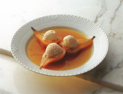 The enticing aromas of this dessert make me think of the Middle East and North Africa, where these flavours are commonly used together in sweetmeat preparations. The ice-cream is my interpretation and adaptation of a well-known and loved recipe from