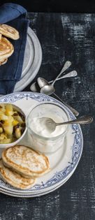 A cross between the English crumpet and American pancake, the pikelet is said to have originated in Wales. You need to plan ahead when making pikelets as the yeast requires time to do its thing, so these are best served for brunch (or indeed for tea). They come with a warming pear compôte flavoured with ginger and cloves, but can also be served topped with a few rashers of crisp bacon and a drizzle of maple syrup, as opposite.