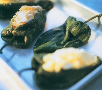 Preheat the oven to 200°C/400°F/gas mark 6. Cut a slit in the end of each poblano chilli to allow the steam to be released during cooking. Brush the chillies with a little oil and roast in the oven f