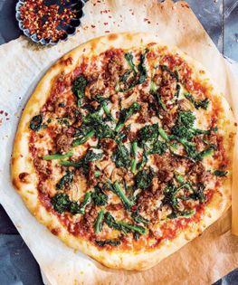 The mixture of sausage, slightly bitter broccoli rabe, garlic, and red pepper flakes is often reserved for pasta, but why not add it to a pizza? Sautéing the ingredients together with plenty of olive oil brings all the flavors together.