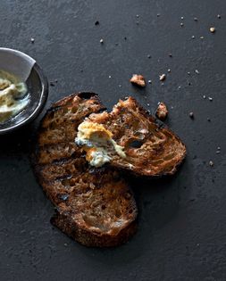 Slice bread into 1-inch-thick slices. Brush olive oil on both sides of the bread and sprinkle with salt. Grill bread using a grill pan, or place under the broiler until crisp and toasted. Flip bread halfway through to toast both sides.