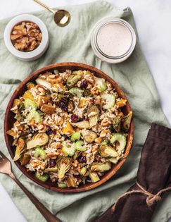 A wholesome salad designed for the colder months. This is a warm, grain-based salad that highlights one of my favorite health-supportive, cruciferous veggies, brussels sprouts! Soaking the walnuts makes for a creamier consistency and better digestion.