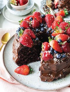 I’m bringing Bundt cakes back! They’re beautiful, and the shape of a Bundt pan almost guarantees easy, even baking. I prefer a silicone pan to prevent sticking. This is my staple chocolate cake with an icing made from black beans and hemp seeds—your guests get a hit of protein, fiber, essential minerals, and anti-inflammatory fats with their dessert! Be sure to let the cake cool completely before icing.