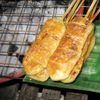Grilled rice cakes are enjoyed throughout Asia—in Japan, for example, where they might be stuffed with miso or bean paste to make a popular snack called onigiri (you find this not only at yakitori parlors, but at kiosks in train stations). Or in Thailand, where khao-tung, round grilled rice cakes, come with nam prik pao, roasted sweet chile jam, dished up by sidewalk grill jockeys. Here’s the Laotian version, from a vendor in the French colonial town of Luang Prabang, w