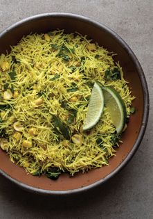 This recipe brings back memories of a dish my bā (paternal grandmother) made frequently for breakfast or a snack. Vermicelli upmā itself is a common South Indian dish made from thin rice or semolina noodles. My bā’s spin on it always included corn, which is the perfect addition to these pleasantly tangy and nutty noodles. You can also add other veggies, such as carrots and peas, if you wish.