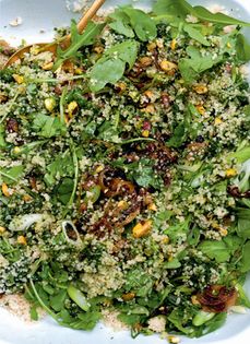 A good-looking and even better tasting side salad. It has strong flavours and is extremely healthy but still feels light and comforting. Serve it with Poached baby vegetables or with fish. Adding some feta will make it a bit more substantial.